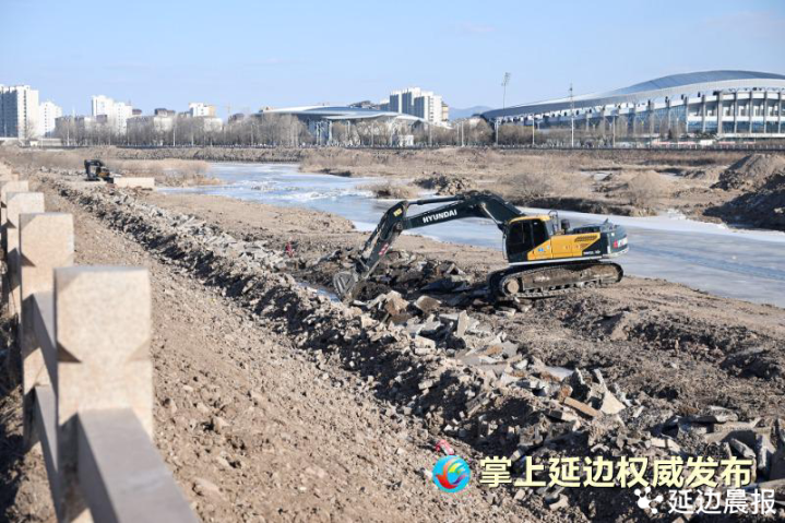 “施工车辆正在拆除原堤防混凝土护坡及开展施工场地平整工作,为下一步堤防坡面建设和人行步道铺设做前期准备工作。”延吉市水利局副局长于兴国介绍,该工程将于3月初进入全面施工阶段。工程总投资14270.75万元,治理河道总长7.65公里(包含布尔哈通河干流长6.58公里、支流朝阳河1.07公里),提标改造布尔哈通河两岸堤防总长12.3公里,其中左岸6.2公里、右岸6.1公里;提标改造朝阳河回水堤两岸堤防总长2.3公里,其中左岸1.2公里、右岸1.1公里,改造排水涵洞13座,新建下河台阶9处,滩槽整治6.58公里。